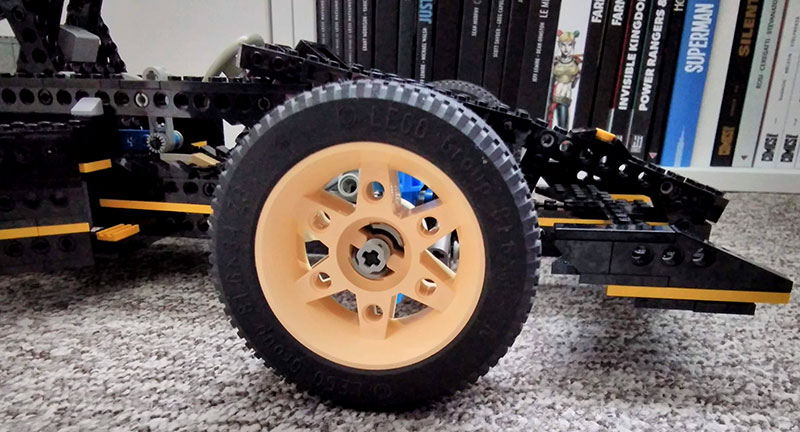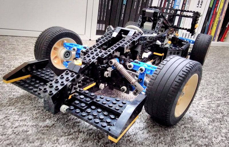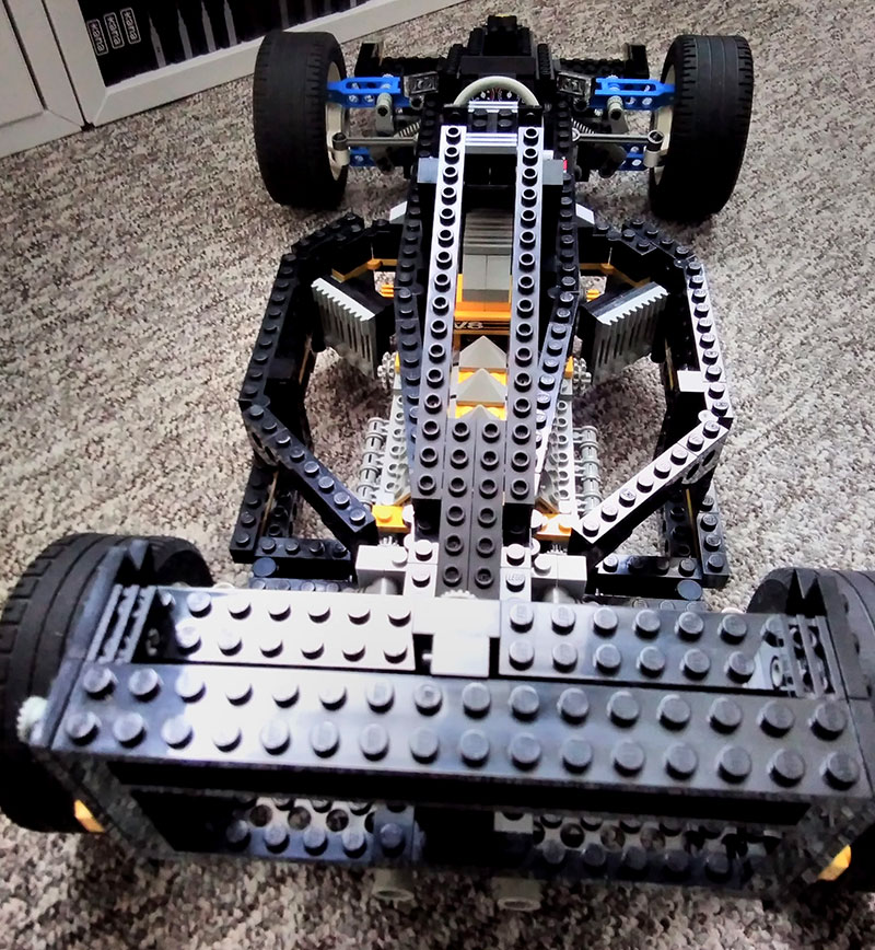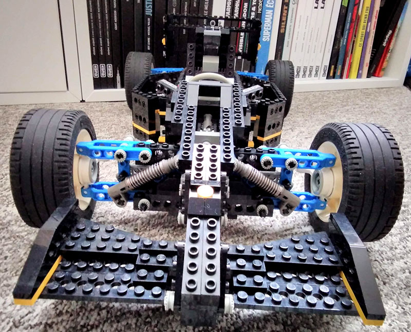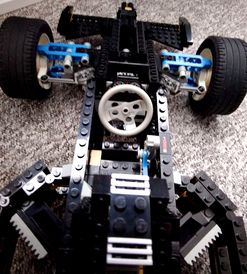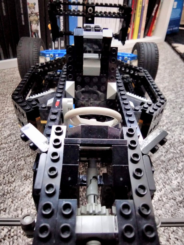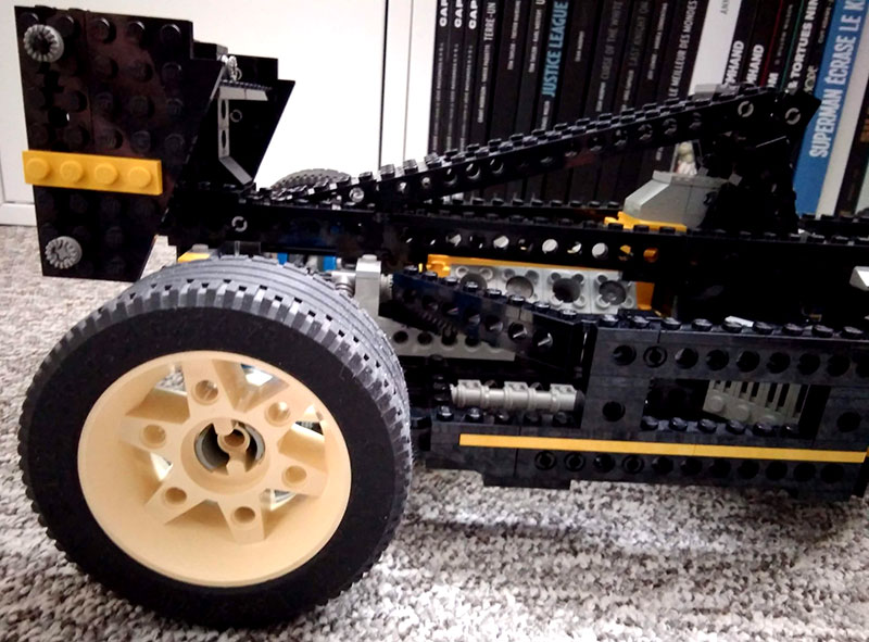 Au final, l’engin terminé est plutôt réussi et conséquent, presque aussi long que La Batmobile 1989 pour vous donner un ordre d’idée. La comparaison s’arrête là ceci dit. Je n’ai pas compté le nombre de pièces utilisées par ce modèle. La Supercar originale en sollicitait 1343, la Formule 1 en utilise peut être 1000 ? A une vache près…