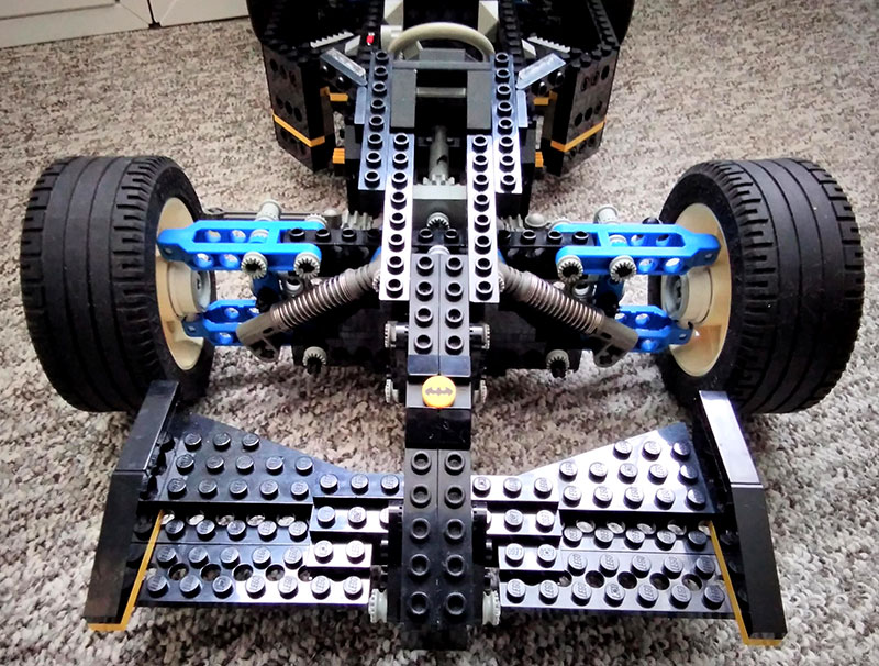 Enfin, j’ai essayé de combler des vides entre certaines pièces et j’ai ajouté un petit Bat-logo sur le devant à la place du logo proposé à l’origine (j’en avais en trop dans le set LEGO 70905).