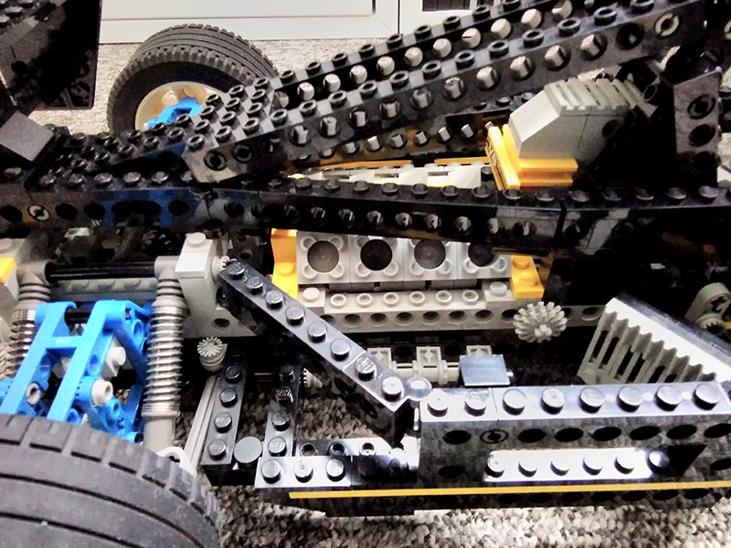 Dans la mesure du possible, j’ai pris le parti de remplacer toutes les pièces blanches visibles par des équivalents noirs. C’est là où j’ai notamment perdu un peu de temps à les chercher perdus dans mes bacs pleins à craquer.
