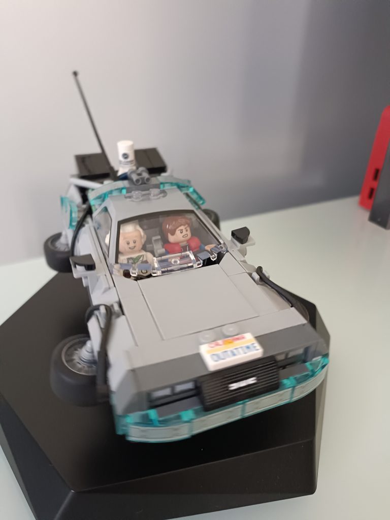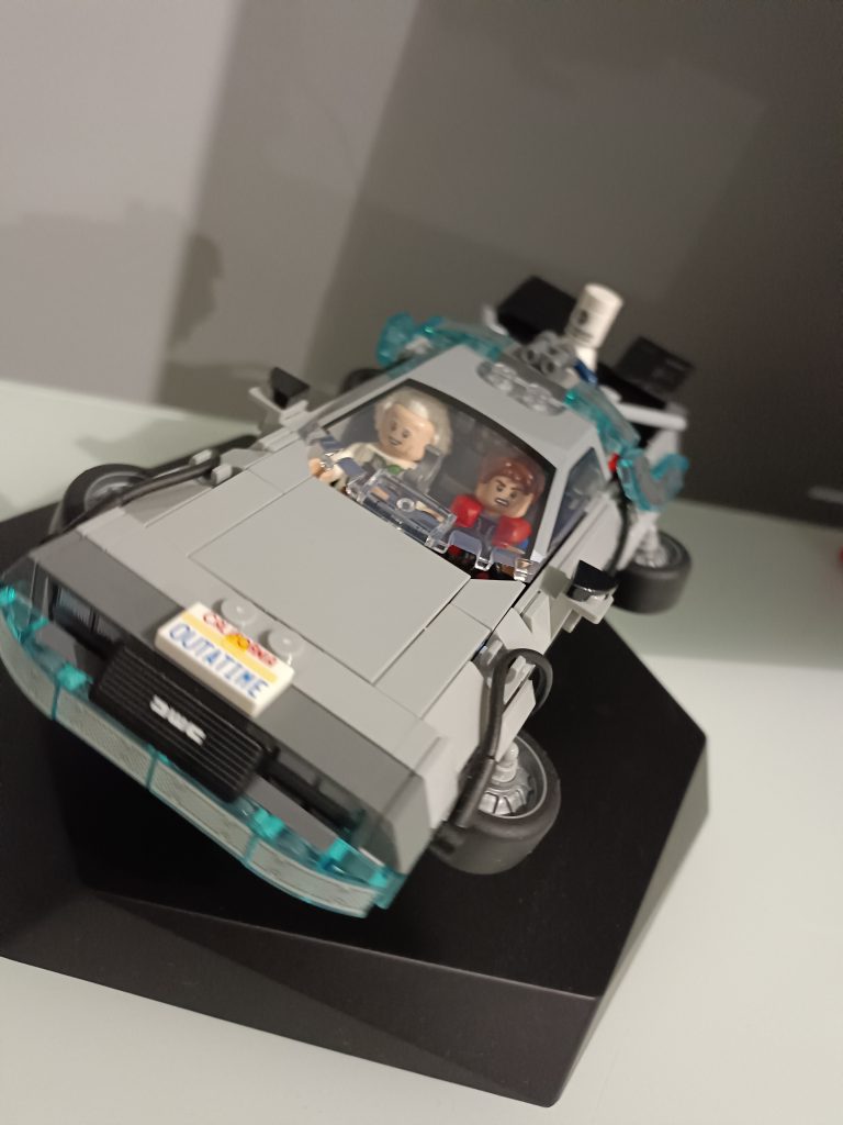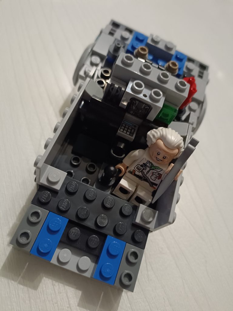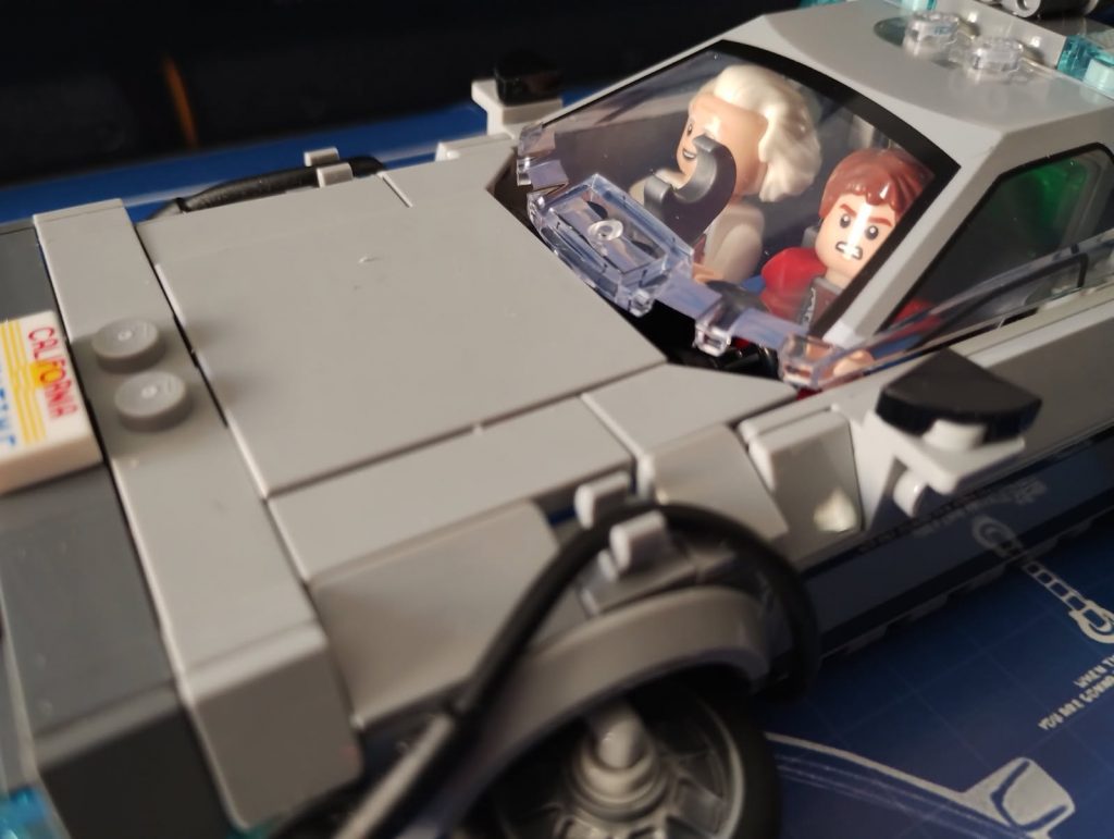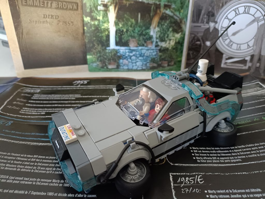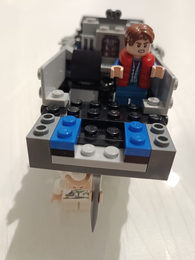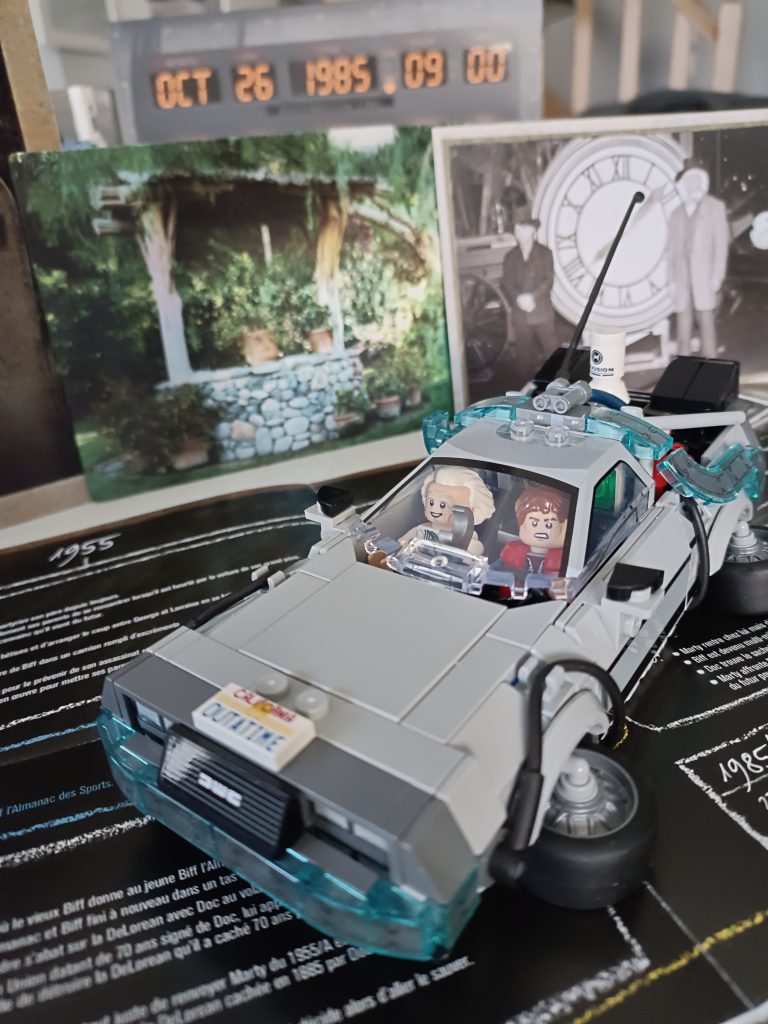 Du Coup j’ai regardé le premier film et me suis rendu compte que la version volante il fallait que j’alterne les minifigs, du Doc et que je le mette au volant. J’ai deux minifigs du Doc et trois de Marty.