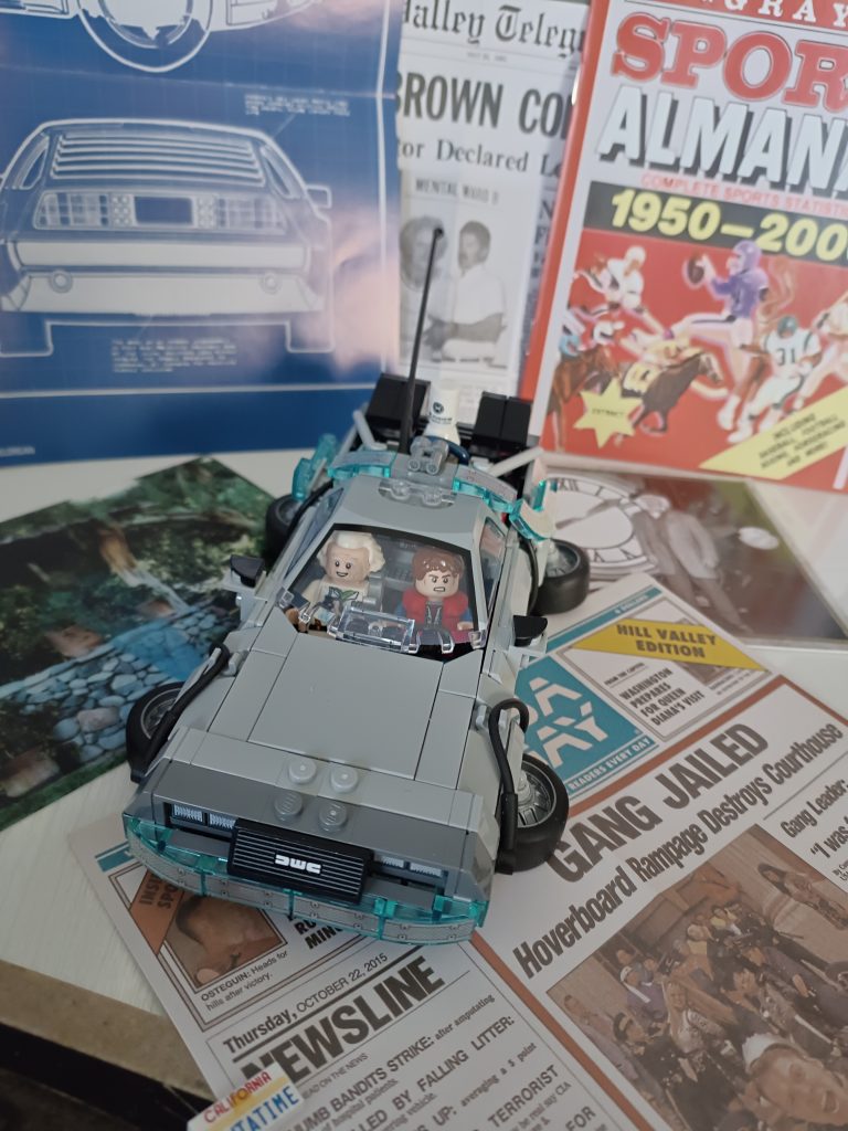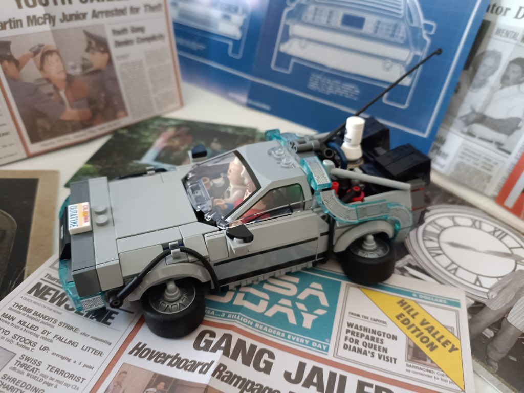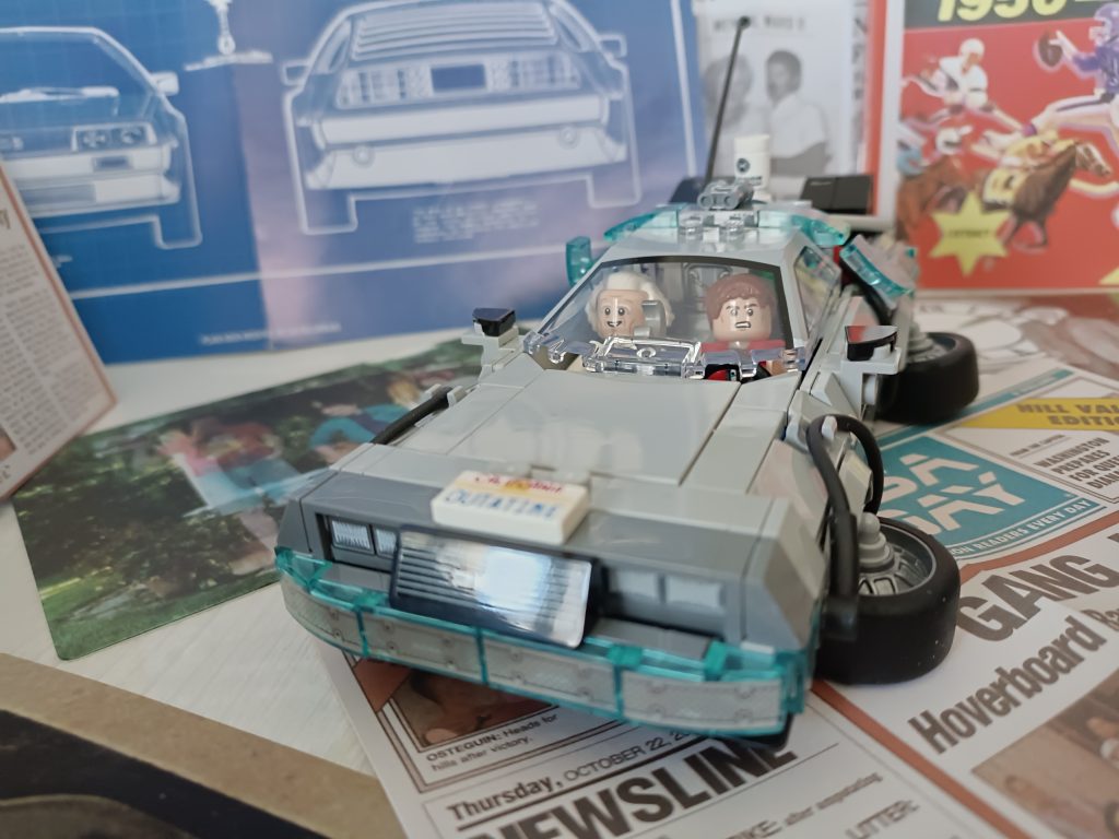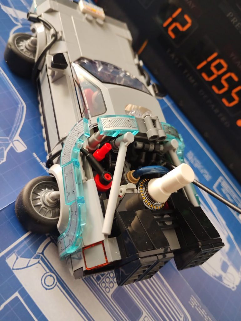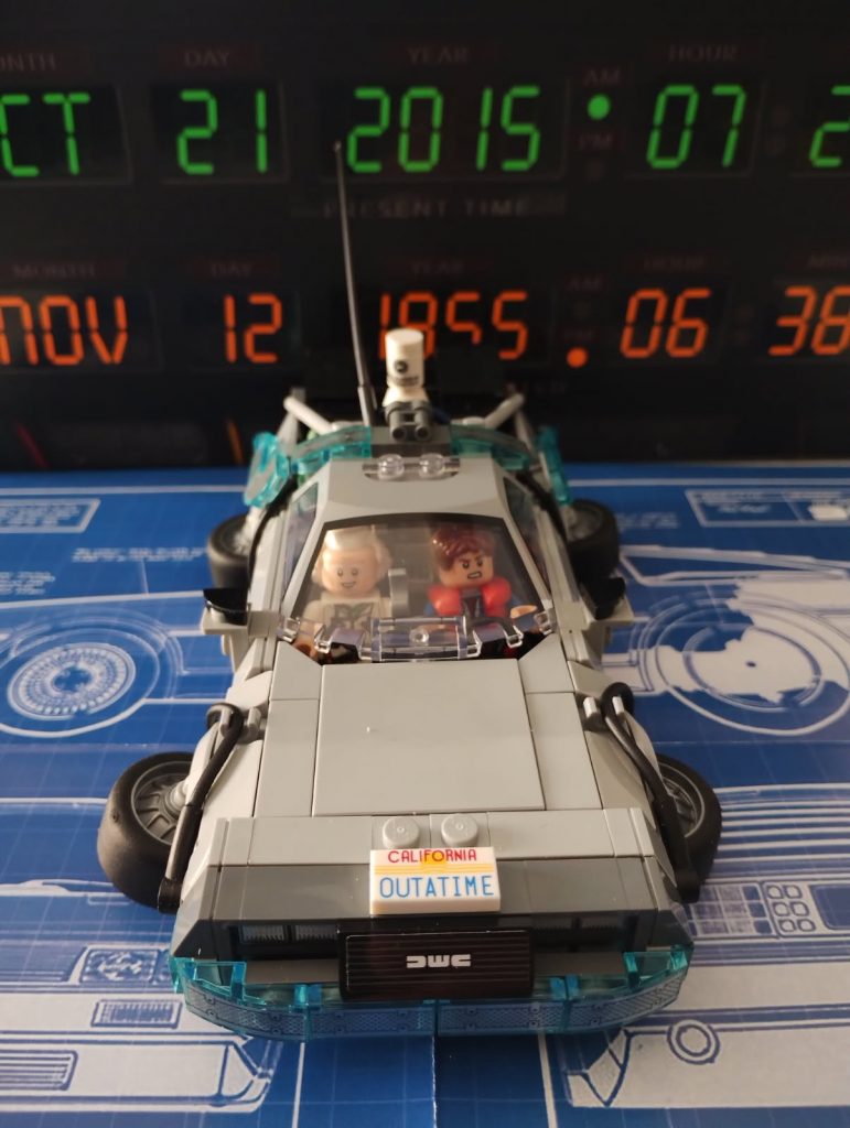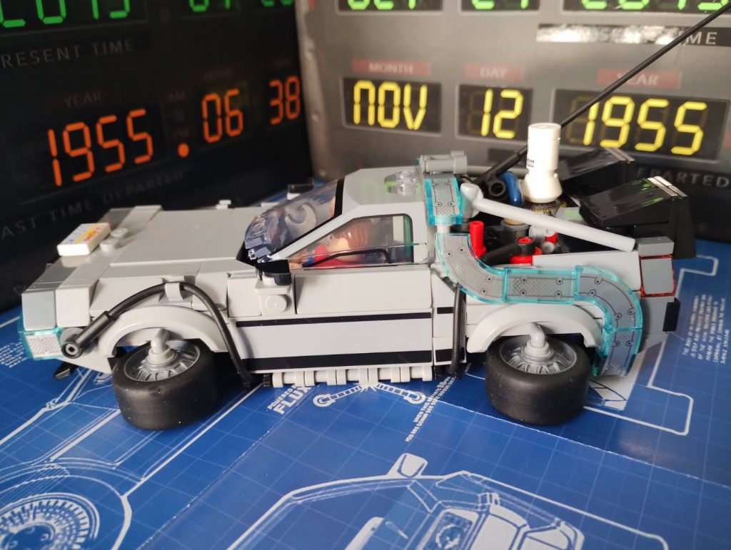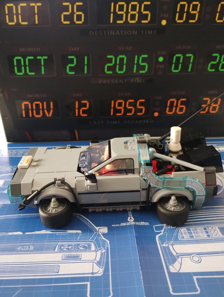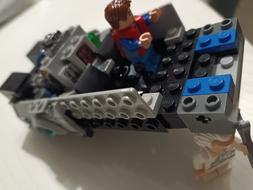 Du Coup j’ai regardé le premier film et me suis rendu compte que la version volante il fallait que j’alterne les minifigs, du Doc et que je le mette au volant. J’ai deux minifigs du Doc et trois de Marty.