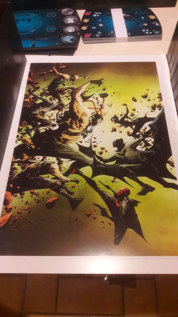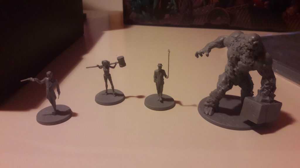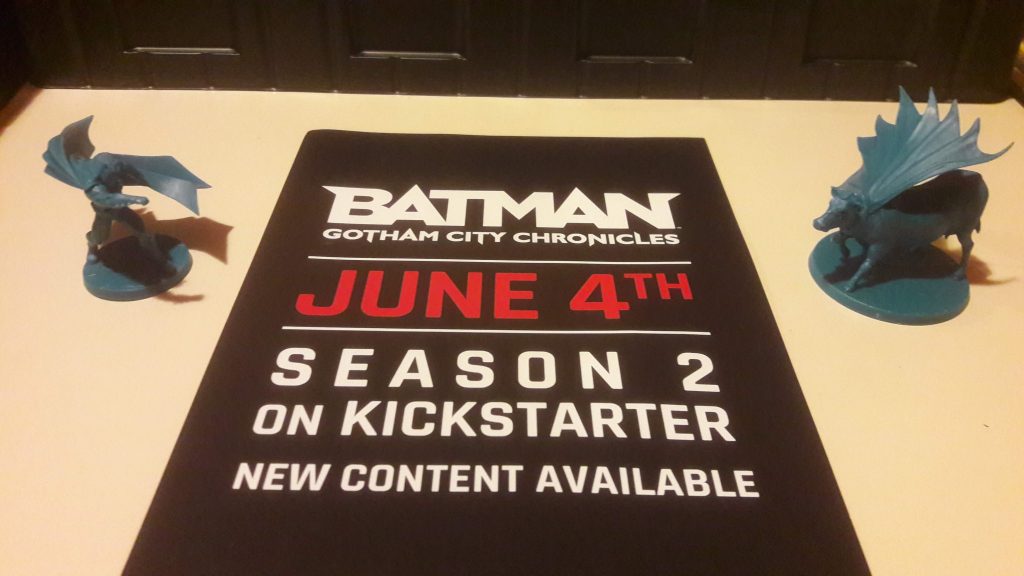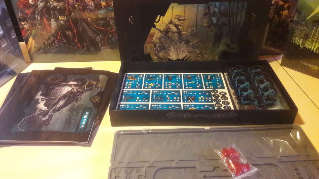 Le jeu est édité par Monolith, a été financé sur Kickstarter, est basé sur les règles de Conan (du même éditeur), mais optimisé, et surtout a été relooké avec des masques pointus, afin de pouvoir rendre Gotham plus sure à coup de poing et de batarang (en même temps, moins sure, c’est compliqué). Le tout entièrement supervisé et validé par DC Comics.